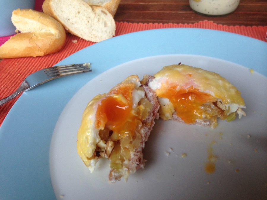 - Na ongeveer 10 minuten is de kaas gesmolten en en ei klaar.