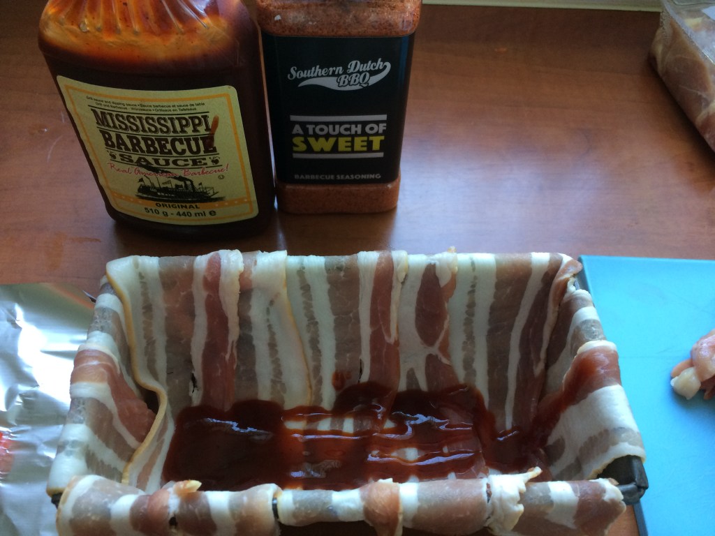 Smeer het ontbijtspek in met chicken rub of het kruidenmengsel.