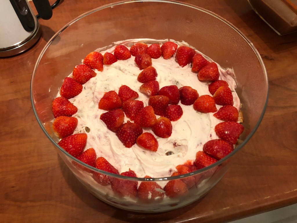 Aangezien we nu een mooie glazen schaal hebben maken we meer triffle. De combinatie tussen cake, vruchten en pudding is heerlijk. Een van onze favorieten is deze aardbeien mascarpone triffle. Daarnaast zie hij er ook erg feestelijk en imposant uit wanneer je deze op tafel zet. eem lust voor het ook en nog lekker en fris toe.